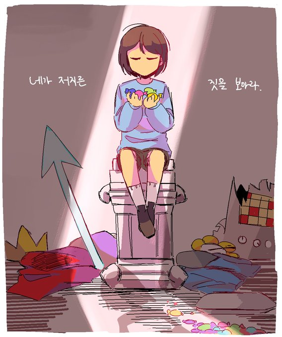 프리스크의 뚝심있는 무표정을 사랑하지만 가끔 개구쟁이 아이처럼 웃어줬으면 좋겠어~ 휴먼이랑 파피루스