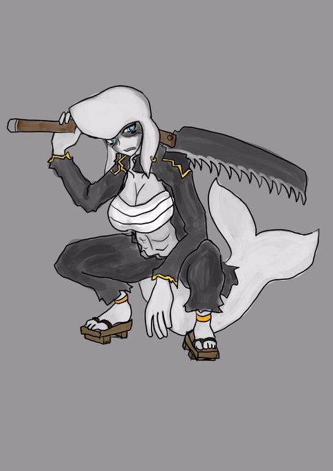 #創作種族あみだ企画 赤子さん@akachan072 考案の海洋人描かせて頂きました! 白鯨のメルビィちゃん すぐに手が出るけどなんやかんやで面倒見の良い姉御タイプの不良海洋人さんでございます…