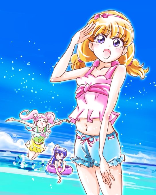 水着みらいちゃん達 なんか夏コミで配布できるポストカードにできないかなとか考え中