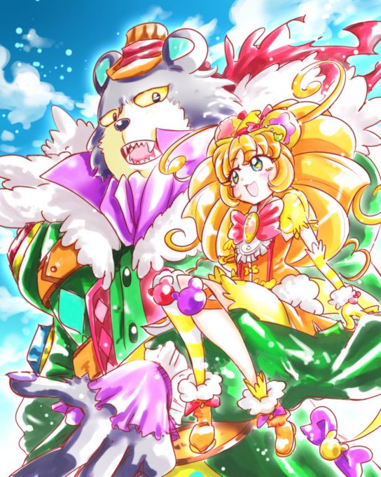 平和なクマタ(大)と(キュア)モフルン・・・そんなシチュエーションがあってもいいよねっていう絵