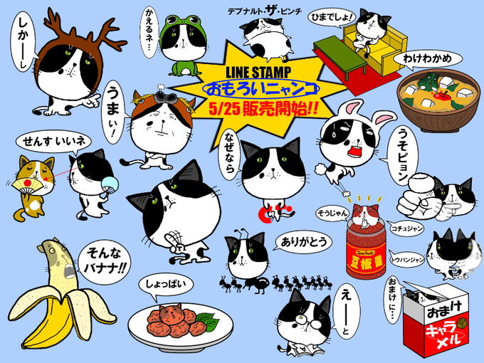 5/25(月) 夜・・・「おもろいニャンコ」販売開始です。白黒ネコのタマが、いろいろ変身したり、ドつまらないギャグをぶっ放します!→http://t.co/Fepxe2PiOX