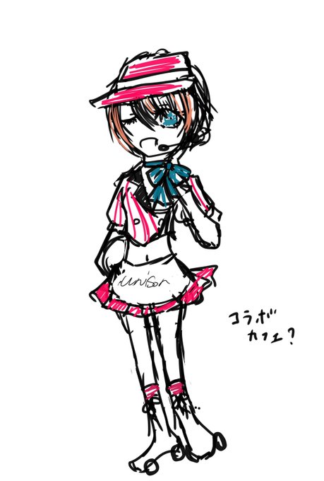 @HRsHRs_info コラボカフェ的落書きなんだけど、これ、ローラースケート履いてるから、止まれないパターンがありそう。