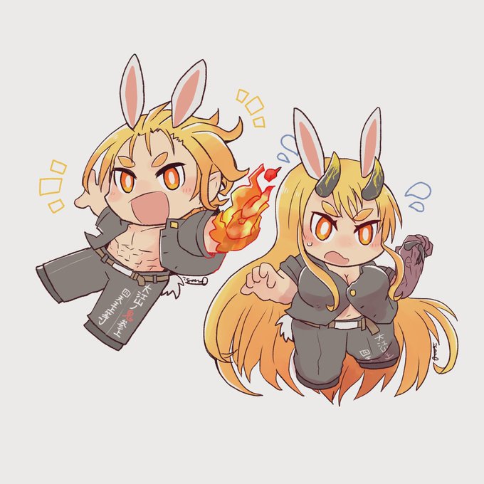 お題箱から「お餅つきで張り合ってるケンゴ、オニワカ」でした。ありがとうございました!(2枚目はうさ無しver.)