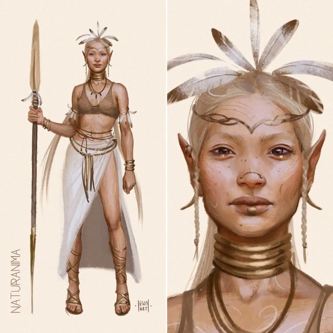 As I mentioned already in a previous post with this character, inspired by how Himba people use their soil to create red ochre, I thought about this clan in Naturanima to use different colors of pigments depending on their location. So here is a darker variation the character :)