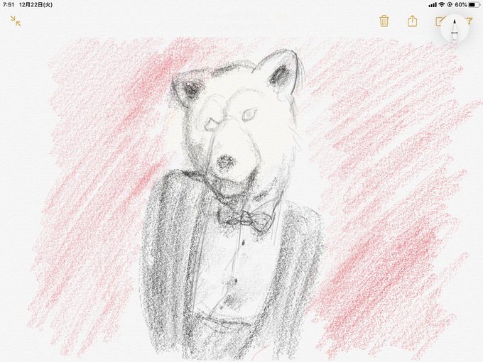 鉛筆で描こうとする ベタ塗りがいいと思い始める(一回心折れる) ぺたぺた塗る iPadのメモ帳で描いたんだけど、ズーム機能増やして欲しい…。