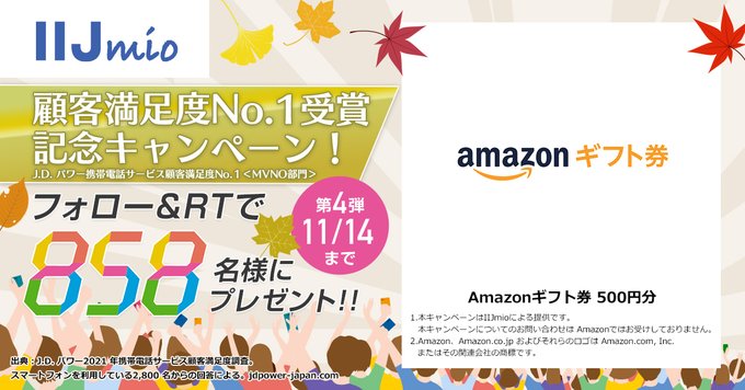 🎊#IIJmio顧客満足度No1受賞記念キャンペーン 🎊
