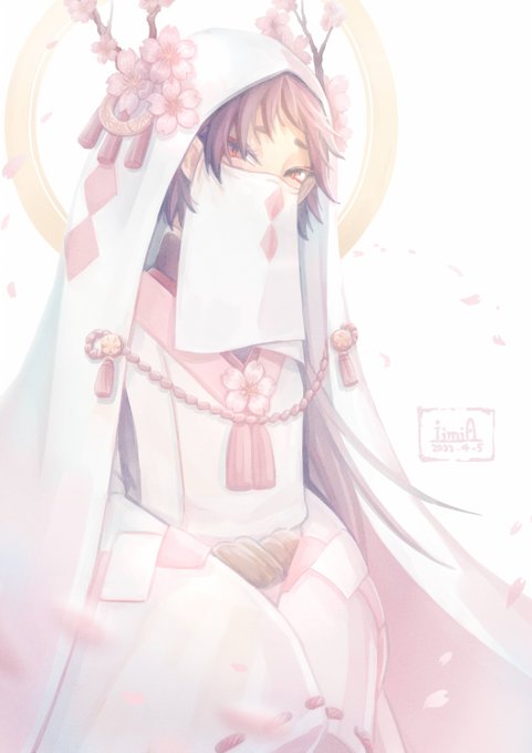 #人外版深夜の真剣お絵描き60分一本勝負 お題は 「アナタが考える身体の一部が3つある黒白目人外」 「“春”から連想する人外」 「マンティス」 🌺鎌鼬
