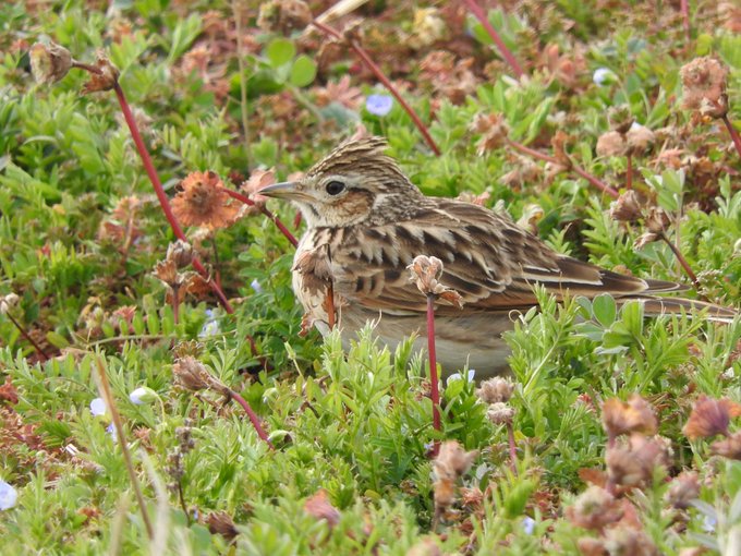 ヒバリ幼鳥初めて見かけた印象「成鳥と違ってかわいい〜」だったんだけど、過去写真と見比べて見たらさほど大差ないな?ギョロ目感かな??