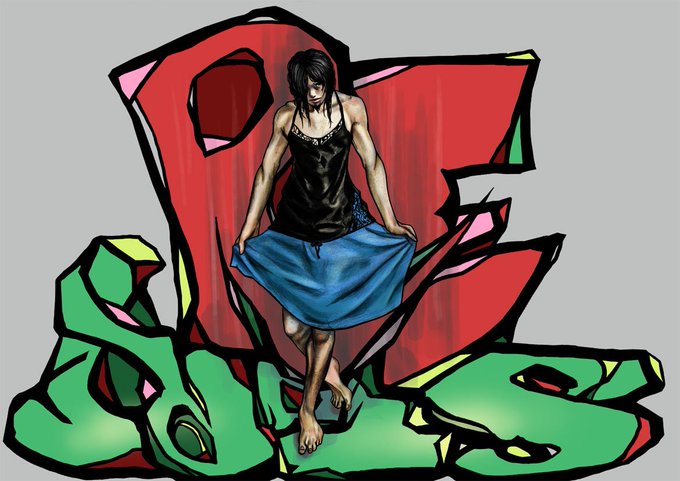 古い画像。初めの頃は自分ではなく、ただ女装した男を描いていた。