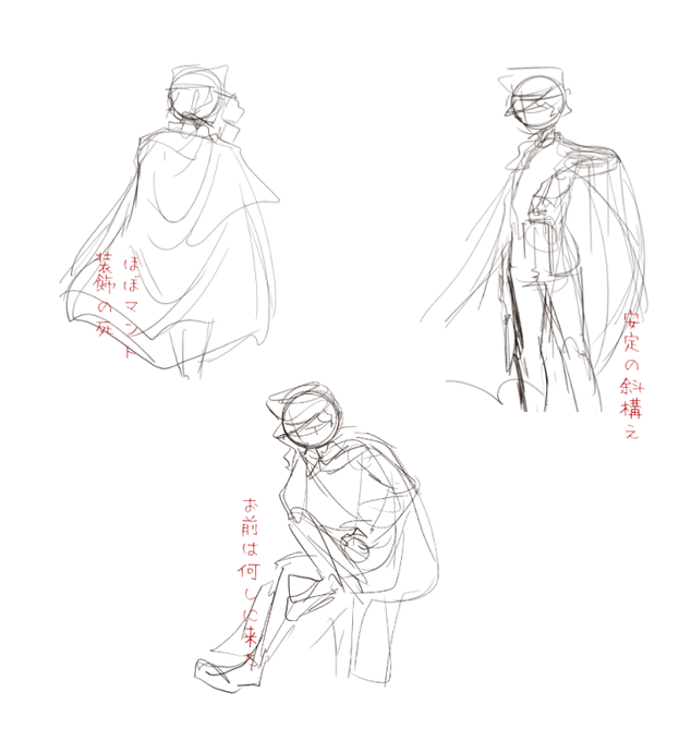 ②立ち絵ポーズ決め 後ろ向かせたいけどマントで隠れるので断念して安牌を取る