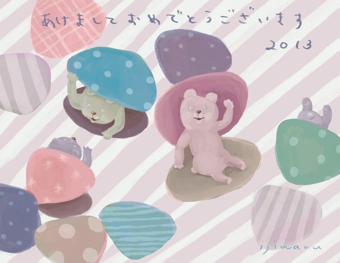 貝を焼いたらくまがでてきた絵です。