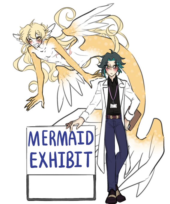 couldn't decide who would be better as the merman, so here's both versions! #XiaoAether