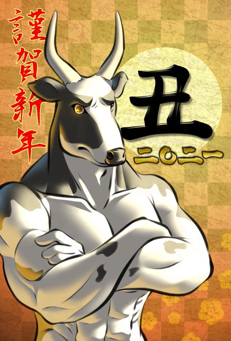 I drew the cow that is the animal of this year's symbol, and sent the postcards with this illustration printed on it to friends.
