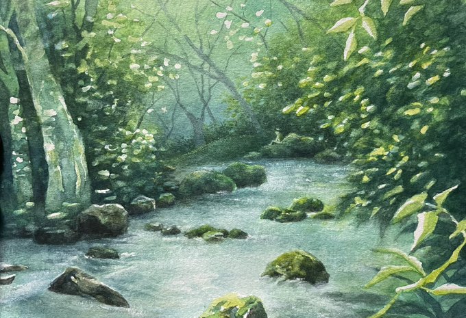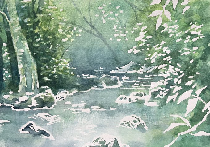 透明水彩のこうなるところほんと綺麗だと思う。(2枚目のとこ)