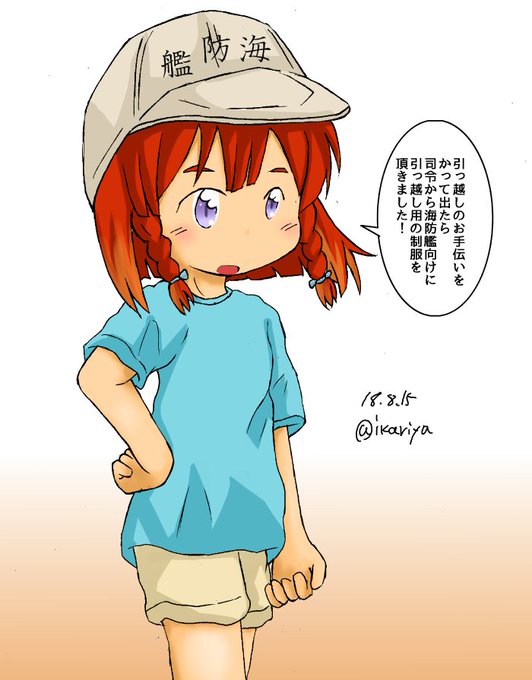 海防艦向け引っ越し用制服(嘘 #艦これ版深夜の真剣お絵描き60分一本勝負 #艦これ版真剣お絵描き60分一本勝負_20180815 #択捉 #血小板ちゃん