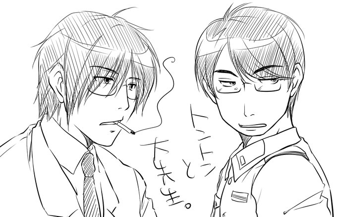 顔だけだと眼鏡が見切れる構図になった(自分が悪い)ので、実際はココまで描いてた(笑) 背景は眠気に勝てずスッ飛びました…__〇_ とりあえず私的にはどちらでも取れる顔にしてます(意味深