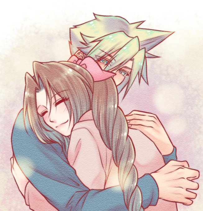 明日は月曜日ですので、ぎゅ~ってして一週間の元気を注入してくれるエアリス♡(*´ω`*) #FF7R #クラウド #エアリス