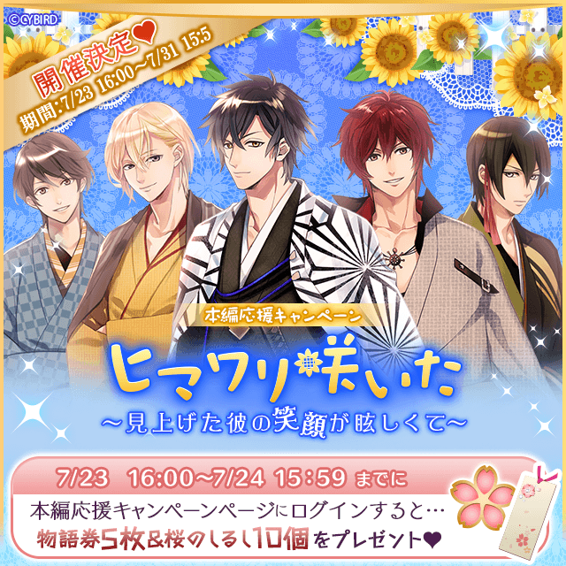 24日15:59までにキャンペーンページにログインで、「物語券5枚」と「桜のしるし10個」プレゼント♥