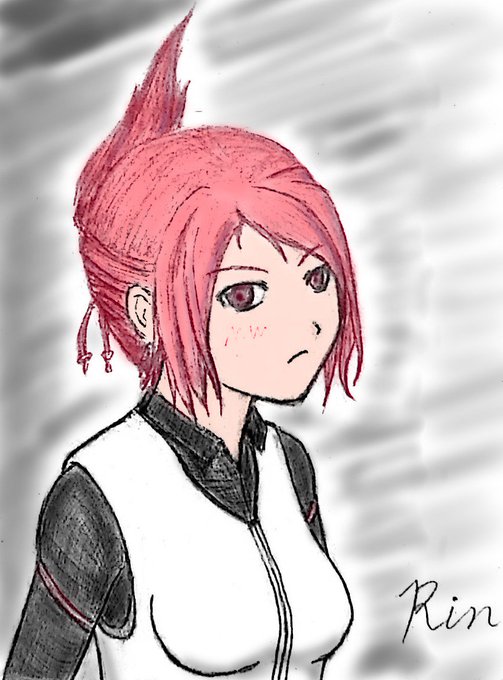 右向き練習りんねぇ 描き終わった後に左右反転すると目のラインとかいろいろずれてるな とりあえずいっぱい描くな #ケムリクサ