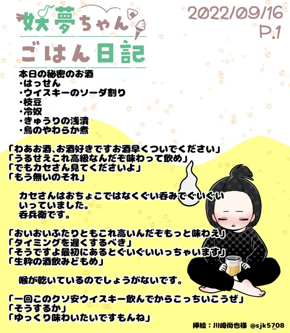 22/09/16ぶんです 最後の「おやすみさい」は本当に日記にそう書いてありました。誤字じゃないです。 #妖夢ちゃんごはん日記