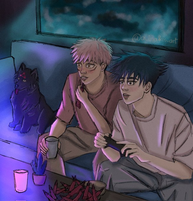 Wholesome video game night with Yuuji, Megumi + Divine Dog :)