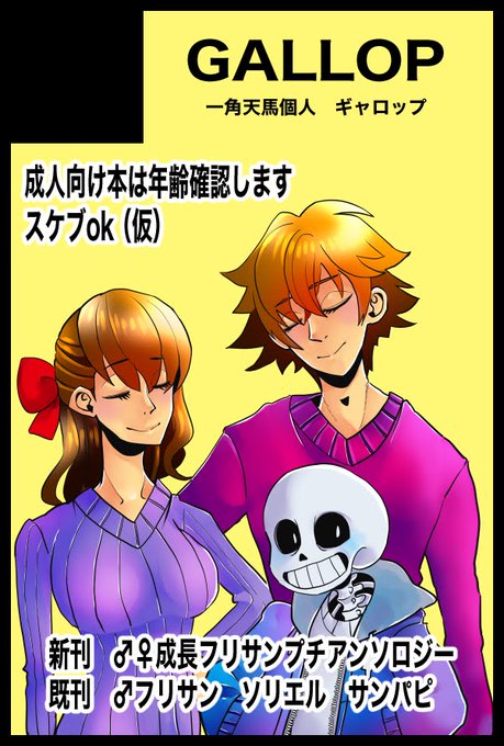 2022.5.4(祝・水 【スパコミ 29 -day2-内】超きみ選択 発行 成長フリスク×サンズ(フリサン)の成人向けプチアンソロジー企画です。 主宰/一角天馬/GALLOP 通販含めて初回ノベルティ数には限りがある予定です 告知サイト https://t.co/UtqpUOazLa 今後もサイト内で提示後、 Twitterでご案内します