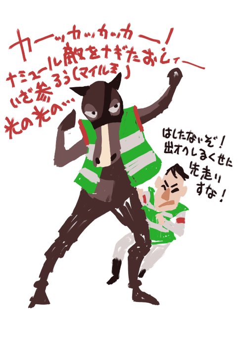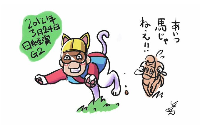 またしても過去絵で恐縮いたします。 14頭立ての12番人気を逃げ勝たせた。 勝利インタビューの江田照猫は伝説。 #2012年日経賞 #ネコパンチ #過去絵 #猫の日 #忍者の日