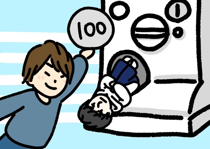 ガシャから出てきた赤羽根さんと、現金をもらって喜ぶ濱さんを描いてみました!