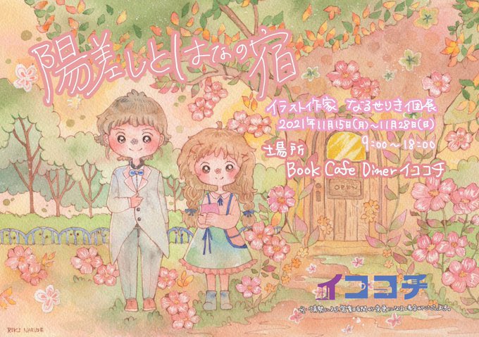 【ギャラリー*予告】 なるせりき初個展@naruseriki1982 『陽差しとはなの宿』を開催します 会期:11月15日(月)〜28日(日) 場所:Book Cafe Diner イココチ #なるせりき #個展 #イココチ #ギャラリー #カフェ
