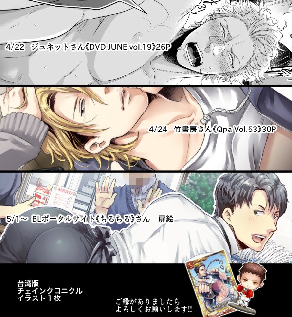 小学館さん【夜騎士 vol2】で、恐れ多くも扉絵と漫画を34P描かせていただきました! https://t.co/jQs7OhcPcj ヘタレ攻×遅い受?な感じのエロ漫画です^q^何卒よろしくお願いいたしますm(_ _)m