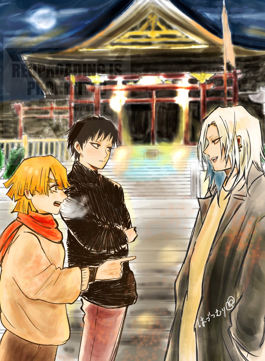 3人仲良く初✨詣。 今年もお世話になりました。 来年も💎さんを中心に⚡️や弟も描くし「可哀想😭♡」から「可愛い♡」まで何でもやるぞ😚 来年は触🐙手の本も出す予定だし画力向上を見守ってください!本当にありがとうございました!良いお年をお迎えください🙌