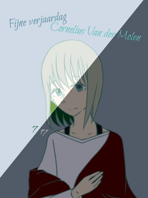 ↑ ノアハ君誕生日絵の没案とか加工前。 目を光らせてる奴と無い版。 光らせてない奴の加工版と没背景色版。 上の言葉はオランダ語での誕生日祝う言葉。 どのバージョンも好きで上げたくなっちゃう…。