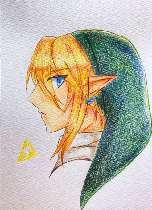 リンクかっこよく描けたと思うんだ やっぱり金髪碧眼は描きやすい 透明水彩難しいなぁ