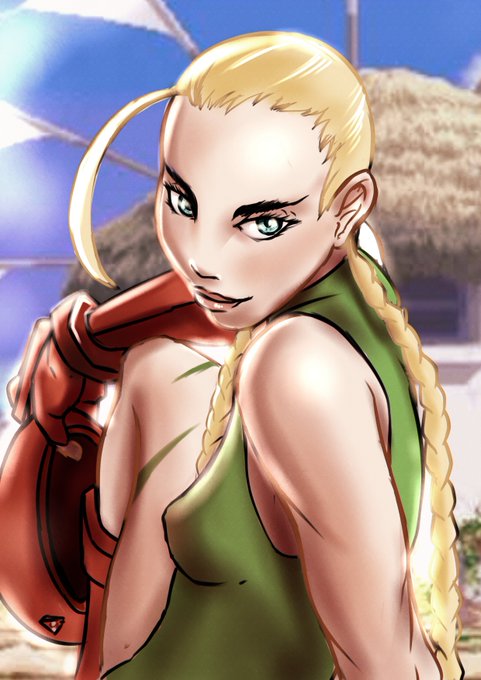 Desenhei a Cammy levando um sol na praia, mas quem queria praia era eu D: