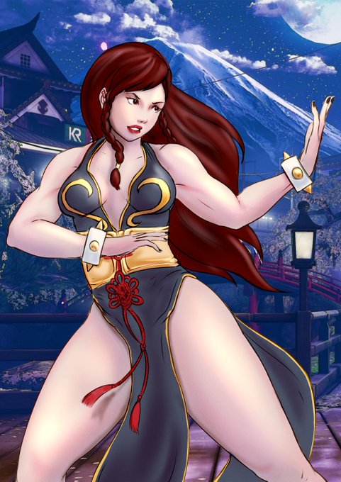 Me inspirei em meio ao tédio e fiz essa Chun-Li pra praticar um método mais rápido de colorir e experimentar texturas. O bg é o estágio chinês do street fighter v, deliberadamente copiado e colado porque sim.