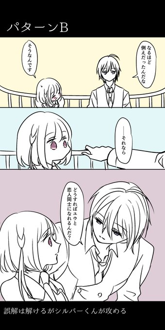 シル監なんですが 続きの展開をいくつか思いついたので あげますね ABどっちも楽しく展開していきそうで悩みました どっちの展開が好みですか?と乃ごときが皆様にアンケートをとりそうになりました 思い直し、パターンCでいくことにしました んんんでもパターンAも捨て難い #twstプラス