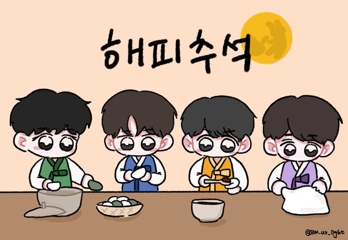 잠시 시간 내서 너무 급하게 그렸지만 해피 추석💛 그리고 요옵 솔앨 열스밍😉 #하이라이트 #Highlight #두준 #Dujun #요섭 #Yoseop #기광 #Gikwang #동운 #Dongwoon