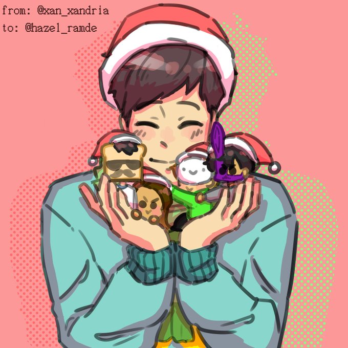 I'm a bit late for the day but Happy Holidays @hazel_ramde!! I'm your secret Santa! Here's #Sykkuno holding tiny #DisguisedToast, #valkyrae, #dream and #CORPSE. Hope you had a lovely holiday!^^