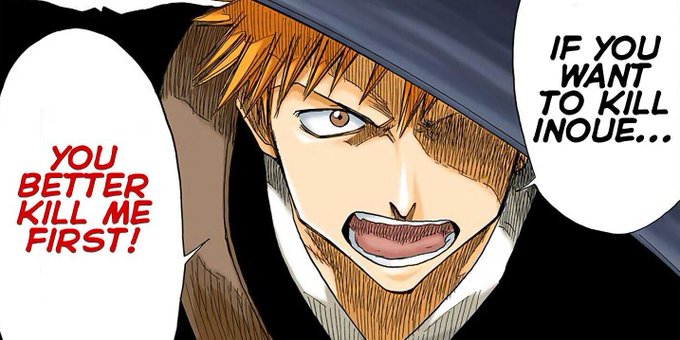 i love it when Kubo draws Ichigo as a "faceless/emotionless" character everytime Ichigo had to ensure Orihime's safety first before going into the battle 🥺