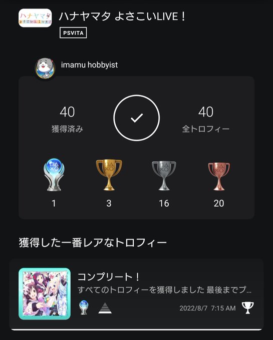 #ハナヤマタよさこいLIVE トロコンしました🏆️