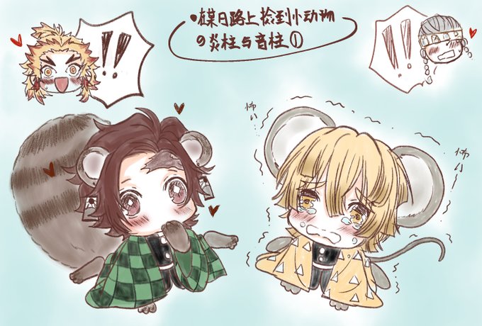 一起出任務的炎柱與音柱在路上撿到不明生物