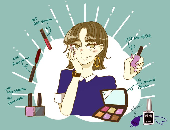 ADDICTIONの新作の海コスメ観てたら描いてしまった🌊🐠深海メイクもかわいいけど、今回は中層ガール よく聴いてるのは多分ワード