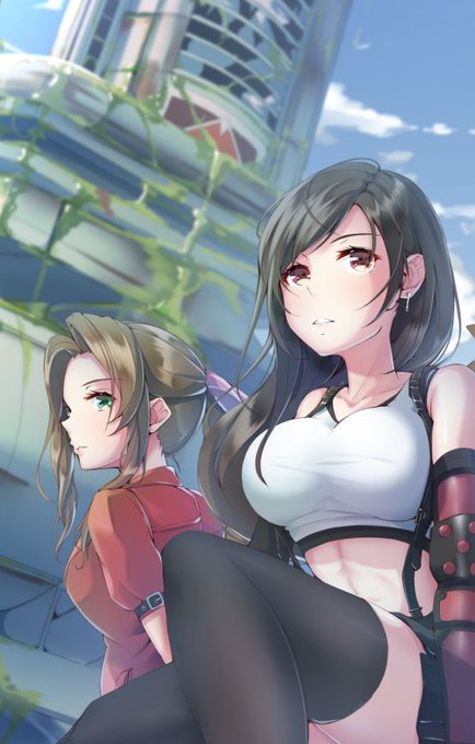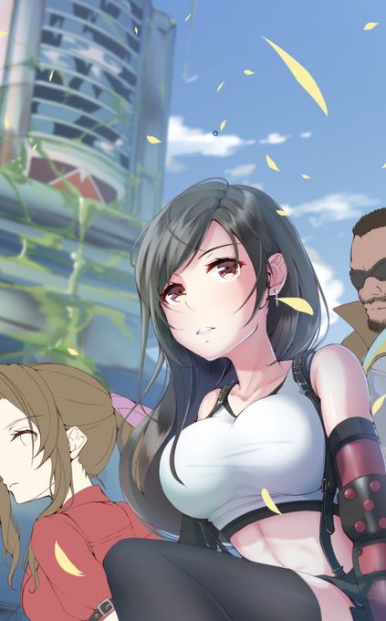 ティファ! 久しぶりに、顔を赤くしない、露出しない、外にいる、背景あるー、で描き方ワカラン