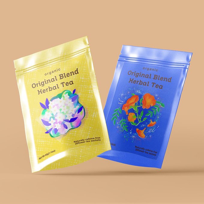 お花のイラストをハーブティーのパッケージにしてみました🌿✨
