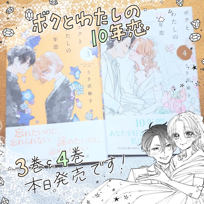 【宣伝】本日『ボクとわたしの10年恋』第3巻&第4巻発売になります!やったね!!!完走おめでとう!!ありがとう!紙コミックスの第4巻には描きおろし漫画も収録されております!電子版には収録されておりませんのでご注意を…!本屋さん等で見かけた時は是非よろしくお願いいたします~🐰💕