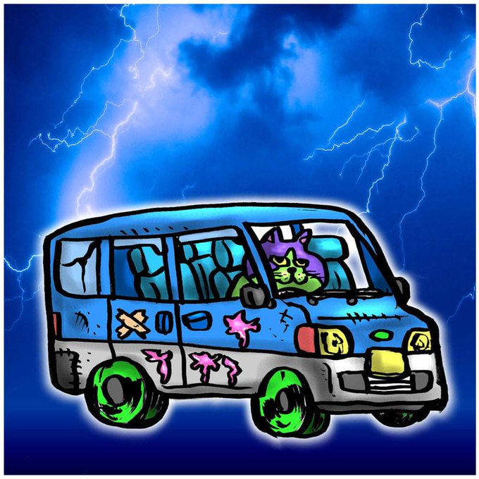 軽バンに乗った猫を描きました。 #イラスト #絵 #猫 #軽バン #サンバー #フォトショ