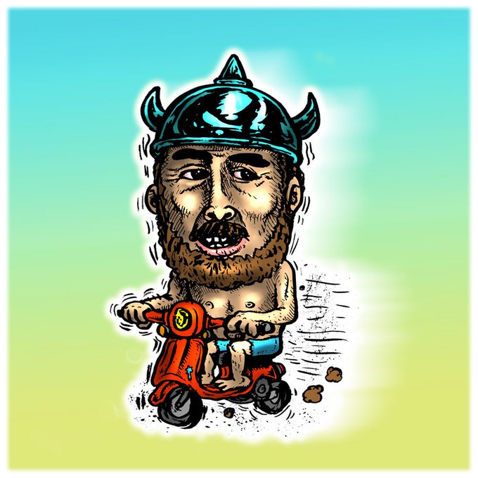 半裸でスクーターを楽しむおじさんを描きました。 #絵 #イラスト #スクーター #おじさん #バイク