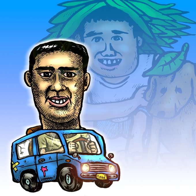 青い車に乗ってご満悦のアニキを描きました。 #絵 #イラスト #車 #アニキ #軽自動車 #バン