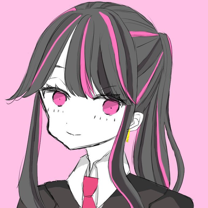 ・黒髪ポニーテールもしくはツインテールにピンクのメッシュ(長さは指定ないです!)
