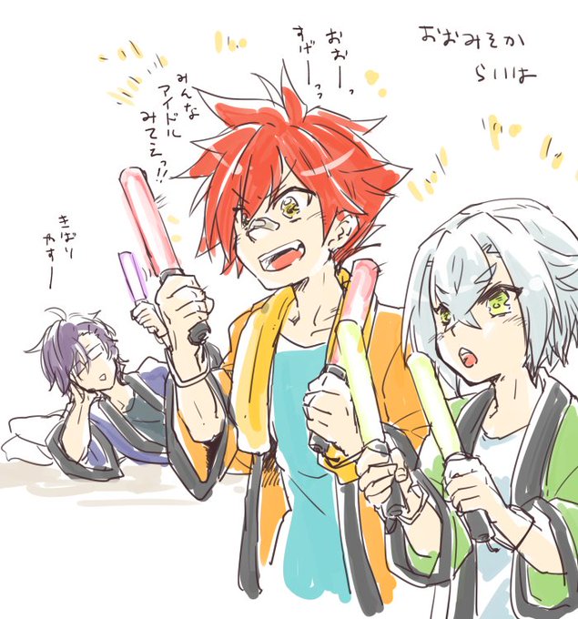 らくがき。大晦日の来派。愛染と蛍は真面目に応援してそうだなと
